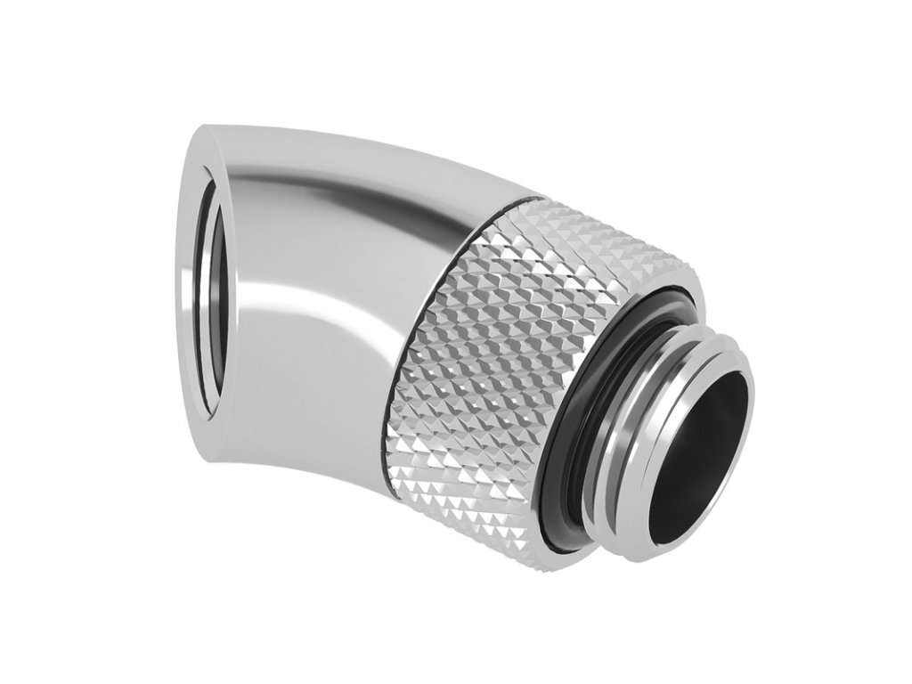 Adaptér 45 stupňov G1/4 palca samec na G1/4 palca samica - otočný, strieborný