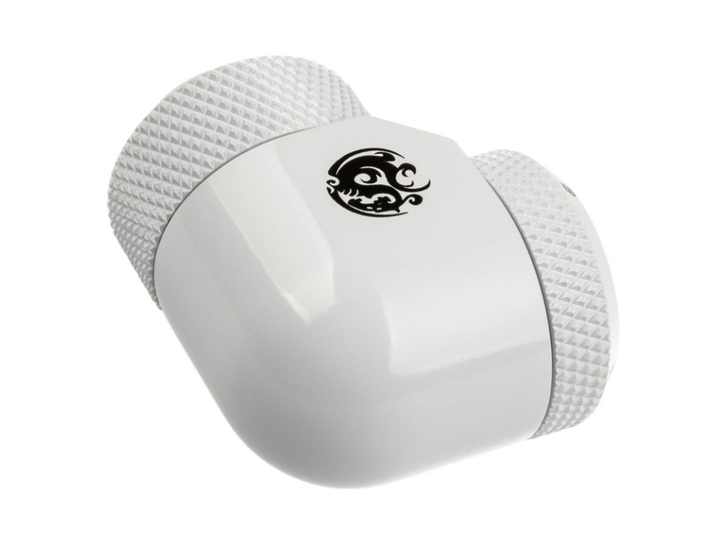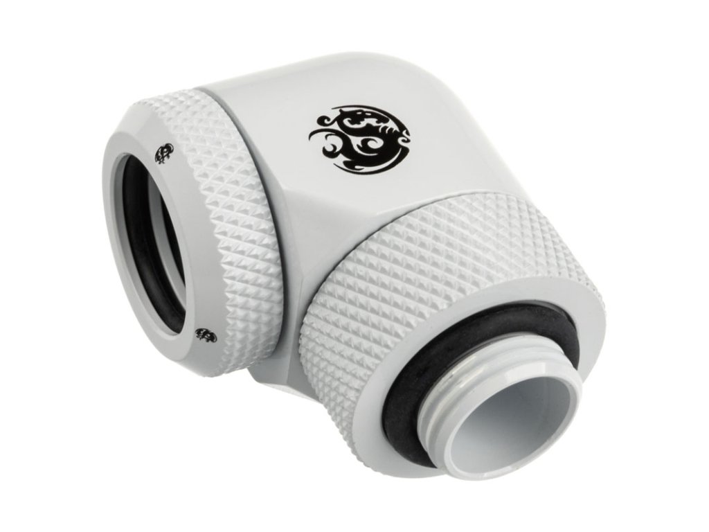 Adaptér Bitspower 90° G1/4" AG na 14 mm AD hardtube - otočný, biely