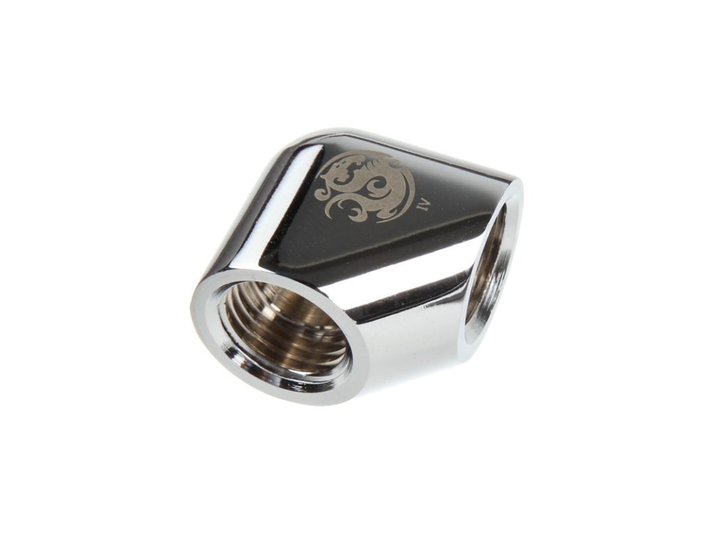 - 90-stupňový adaptér v lesklej striebornej farbe od spoločnosti Bitspower