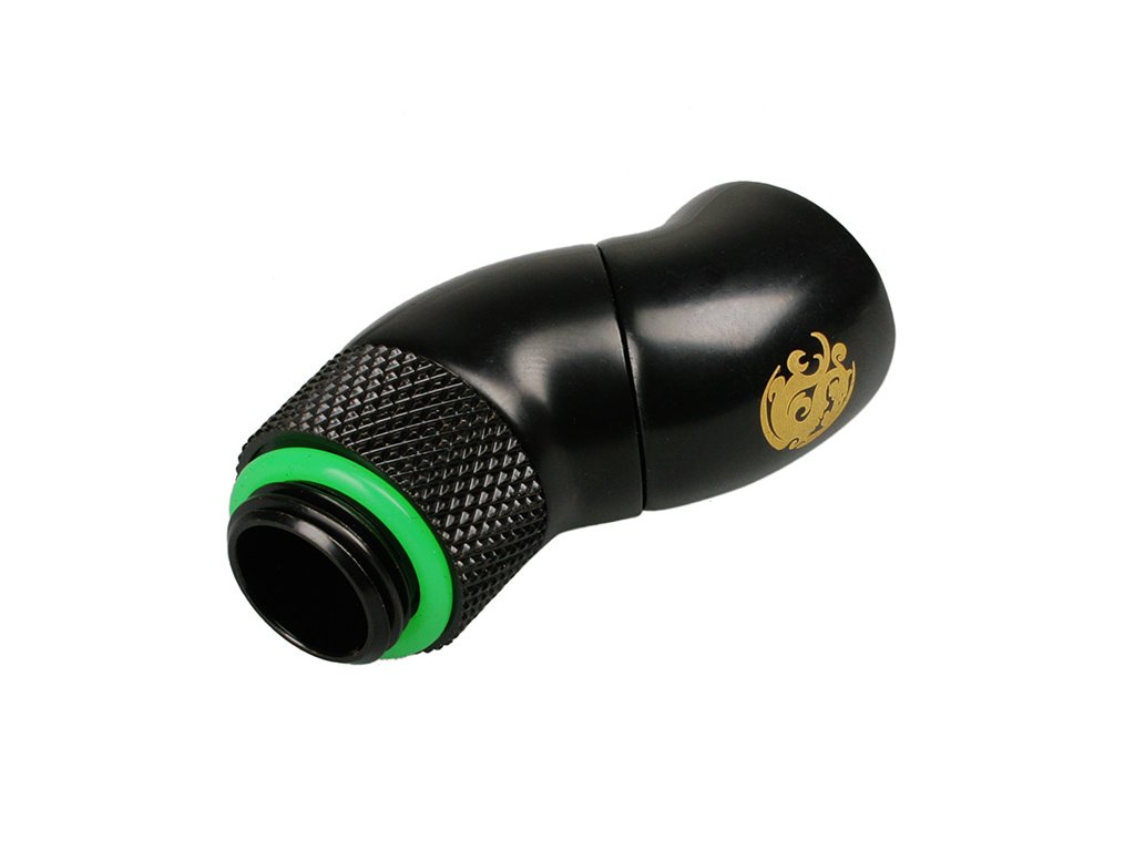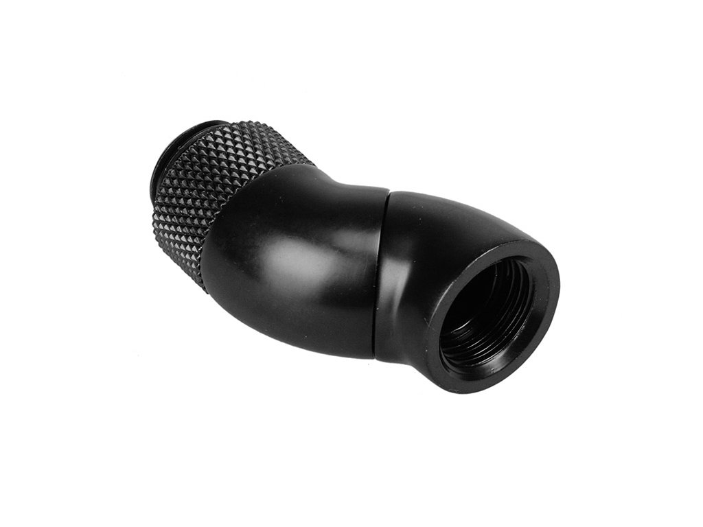 Ide o matný čierny adaptér zo skrutkového závitu G1/4 palca na vnútorný závit G1/4 palca, ktorý je predĺžením. Zvláštnosťou sú dva zabudované otočné kĺby, ktoré umožňujú jednoduchú inštaláciu a veľmi presné nastavenie. Možno realizovať maximálne 90-stupňové vychýlenie.