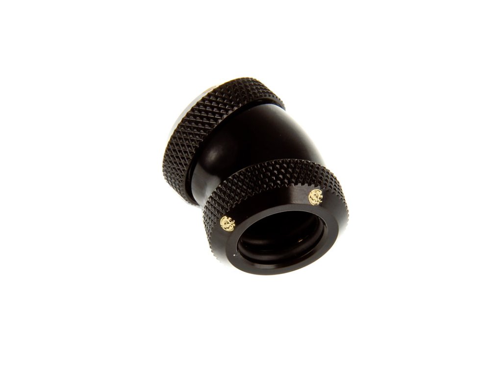 Ide o poniklovaný adaptér v matnej čiernej farbe na predĺženie prípojok v systémoch vodného chladenia. Adaptér je spojka na spojenie dvoch kusov hadíc, ktoré neprebiehajú v priamej línii. Dva gumové krúžky na každej strane zabezpečujú tesnenie.