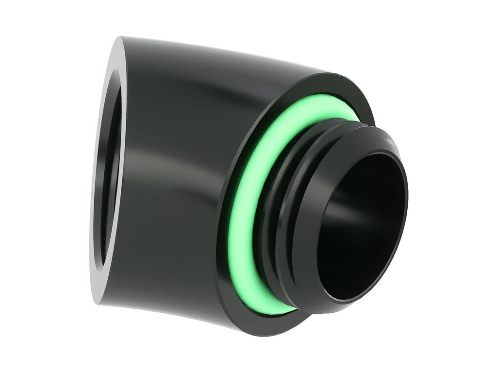 Adaptér na hrazdu, 45 stupňov, G1/4 palca samec na G1/4 palca samica - čierny