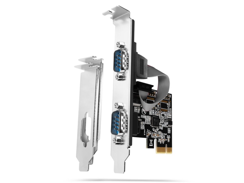 Táto karta adaptéra PCI 2.0 x1 odAXAGON poskytuje dva sériové porty RS-232 s konektormi DB9. Na rozširujúcej karte je nainštalovaná osvedčená čipová súprava ASIX AX99100, ktorá zabezpečuje najvyššiu možnú kompatibilitu. Čip je automaticky rozpoznaný systémom Windows. Príslušné nízkoprofilové kryty slotov sú súčasťou dodávky.Technické údaje: