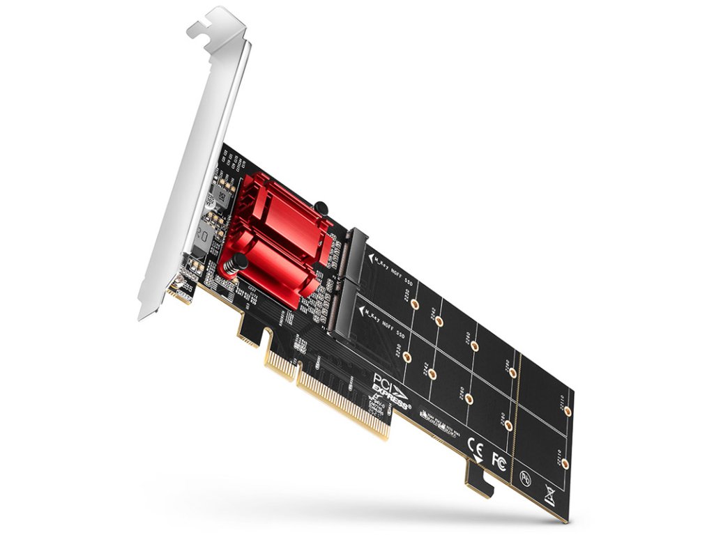 1x AXAGON PCEM2-ND PCI-E 3.0 8x - duálny M.2 NVMe M-key slot adaptér