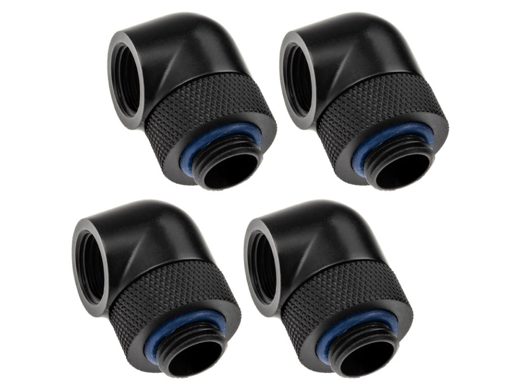 Adaptér XSPC 90 stupňov G1/4 palca samec na G1/4 palca samica - otočný, čierny, balenie 4 ks