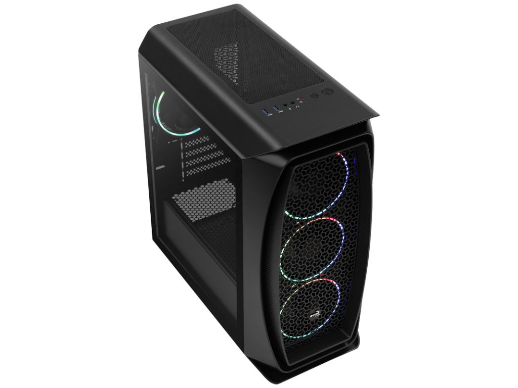 StránkaAerocool Aero One Mini Eclipse ponúka prvky vitríny v kompaktnom formáte micro ATX tower. StránkaBočný panel z tvrdeného skla umožňuje výhľad na nainštalovaný hardvér a plastová predná strana sa vyznačuje perforovaným dizajnom so vzorom voštiny. Perforácia zabezpečuje vysoký prietok vzduchu v kryte a podporuje tak chladenie nainštalovaných komponentov.VAerocool Aero One Mini Eclipse je možné nainštalovať až osem ventilátorov skrine: V prednej časti sú užtri 120 mm ventilátory s osvetlením RGB LED nainštalované, môžu byťdva 140 mm ventilátory možno vymeniť. Do veka je možné nainštalovať dva ventilátory 120 aďalší 120 mm ventilátor je nainštalovaný v zadnej časti skrine. Pri systémoch s vodným chladením je možné v prednej časti a na veku nainštalovať 240 mm radiátor a v zadnej časti skrine 120 mm radiátor.