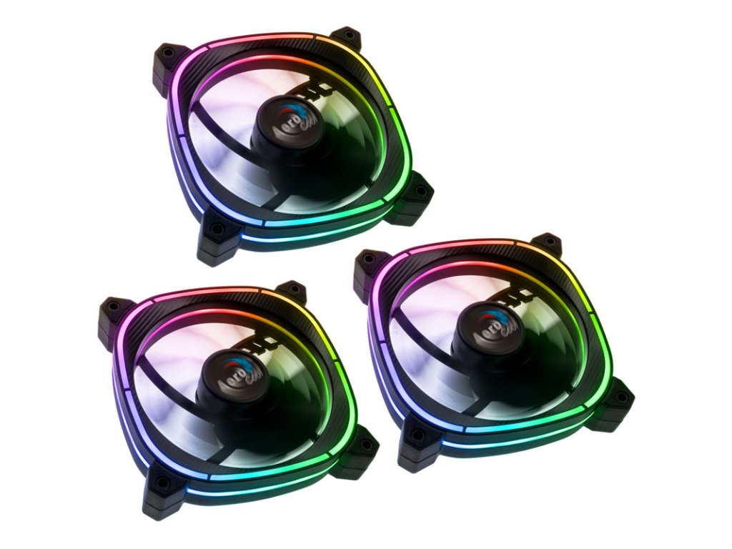 SAstro 12 ARGB spoločnosť Aerocool ponúka 120-milimetrový ventilátor do skrine s digitálne adresovateľným osvetlením RGB LED. Ventilátor má dva rozptylové krúžky, ktoré sú rovnomerne osvetlené LED diódami.Prehľad vlastností trojitého balenia Aerocool Astro 12 ARGB: