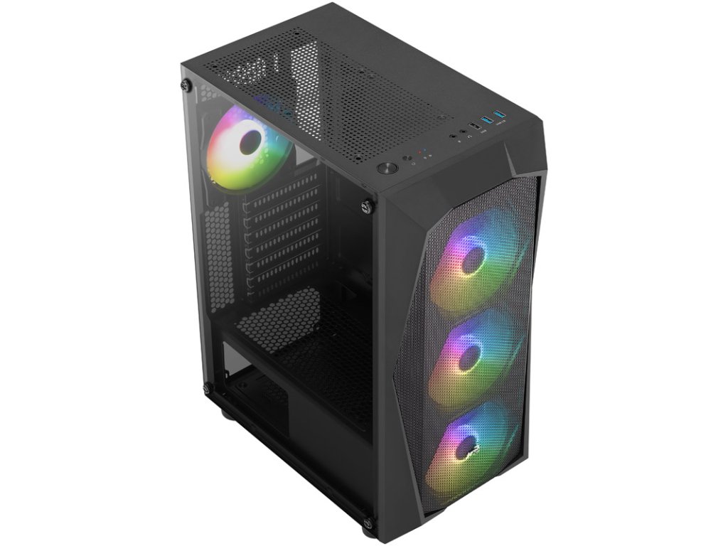 VAerocool Falcon súVentilátor ARGB predinštalovaný. Jeho zvláštnosťou je, žeLED diódy možno ovládať individuálne, čo prináša skvelé efekty. V kombinácii so sieťovanou prednou časťou tak vzniká štýlový dizajn, ktorý je ešte umocnený ďalšími komponentmi RGB. Samotné puzdro je však dostatočne pútavé a môže sa pochváliť aj tichým interiérom.Technické údaje:
