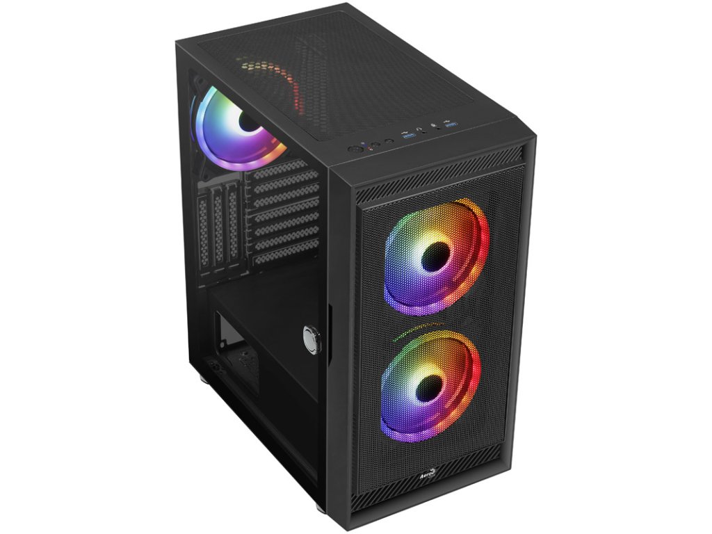 StránkaAerocool Graphite v2 ponúka vitríny v kompaktnom formáte midi veže. StránkaBočný panel z tvrdeného skla umožňuje pohľad na nainštalovaný hardvér a plastová predná časť sa vyznačuje perforovaným dizajnom s jasnými líniami a hranatým dizajnom. Perforácia zabezpečuje vysoký prietok vzduchu v skrini a podporuje tak chladenie nainštalovaných komponentov.VAerocool Graphite v2 celkovo je možné nainštalovať až šesť ventilátorov skrine: V prednej častisú dva 140 mm ventilátory s osvetlením FRGB (Fixed RGB) nainštalované. Do veka je možné umiestniť dva ventilátory 120 alebo 140. Ďalší 140 mm ventilátor FRGB je nainštalovaný v zadnej časti skrine. V prípade systémov s vodným chladením možno do prednej časti nainštalovať 280/360 mm radiátor, do veka 240 mm radiátor a do zadnej časti skrine 120 mm radiátor.