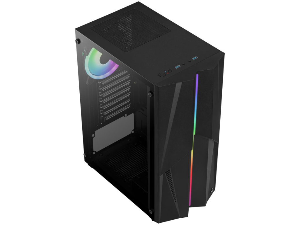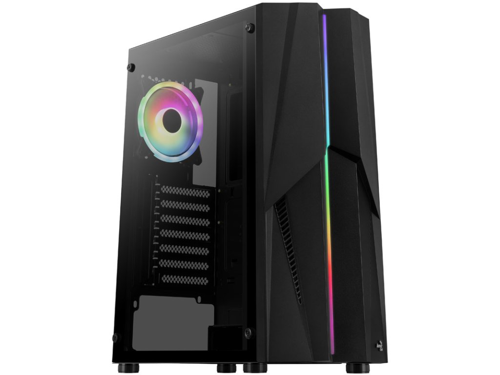 Čierna midi veža pre úsporné systémy sa môže pochváliť štýlovým dizajnom, prednou časťou s RGB osvetlením, predinštalovaným 120 mm ventilátorom a bohatými možnosťami chladenia vzduchom. S priestorom pre základné dosky Mini-ITX, Micro-ATX a ATX a grafické karty do 302 mm možno realizovať aj plnohodnotné herné počítače.Prehľad funkcií zariadenia Aerocool Mecha v2: