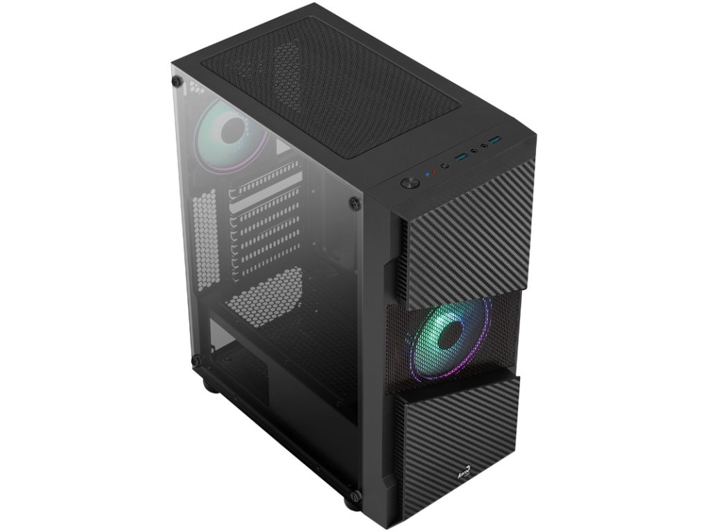 Čierna midi veža pre úsporné systémy sa môže pochváliť štýlovým dizajnom, pútavou prednou časťou s veľkorysým prívodom vzduchu, dvoma predinštalovanými 120 mm ventilátormi s osvetlením RGB LED a veľkorysými možnosťami chladenia vzduchom. Vďaka priestoru pre základné dosky Mini-ITX, Micro-ATX a ATX a grafické karty do 317 mm možno realizovať aj plnohodnotné herné počítače.Prehľad vlastností zariadenia Aerocool Menace Saturn RGB: