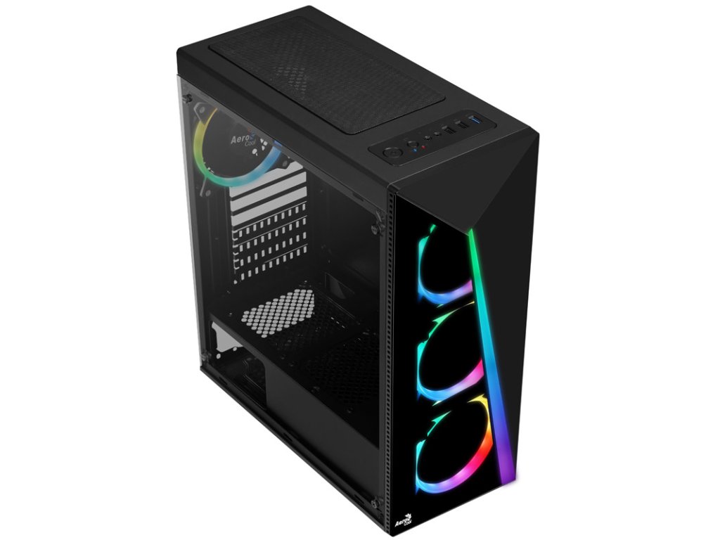 Čierna midi veža pre úsporné systémy sa môže pochváliť štýlovým dizajnom, krytom napájacieho zdroja a veľkorysými možnosťami chladenia vzduchom vrátane predného panelu s pásikom RGB LED. Vďaka priestoru pre základné dosky Mini-ITX, Micro-ATX a ATX a grafické karty do 355 mm možno realizovať aj plnohodnotné herné počítače.Prehľad vlastností tvrdeného skla Aerocool Shard:
