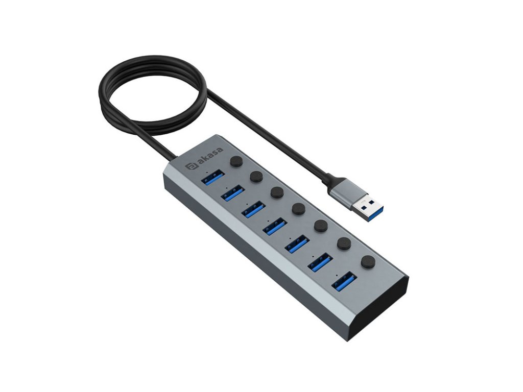 Pripojte sa pomocou tohto rozbočovača USB zAkasa pripojiť k počítaču až sedem ďalších zariadení USB prostredníctvom rozhrania USB 3.0. Maximálna rýchlosť prenosu dát pri presúvaní a kopírovaní súborov je 5 Gbit/s. Každý port sa dá samostatne zapnúť a vypnúť pomocou prepínača a má vlastnú stavovú LED diódu.