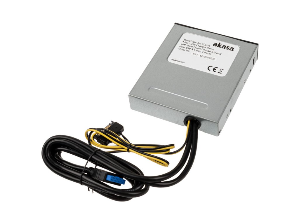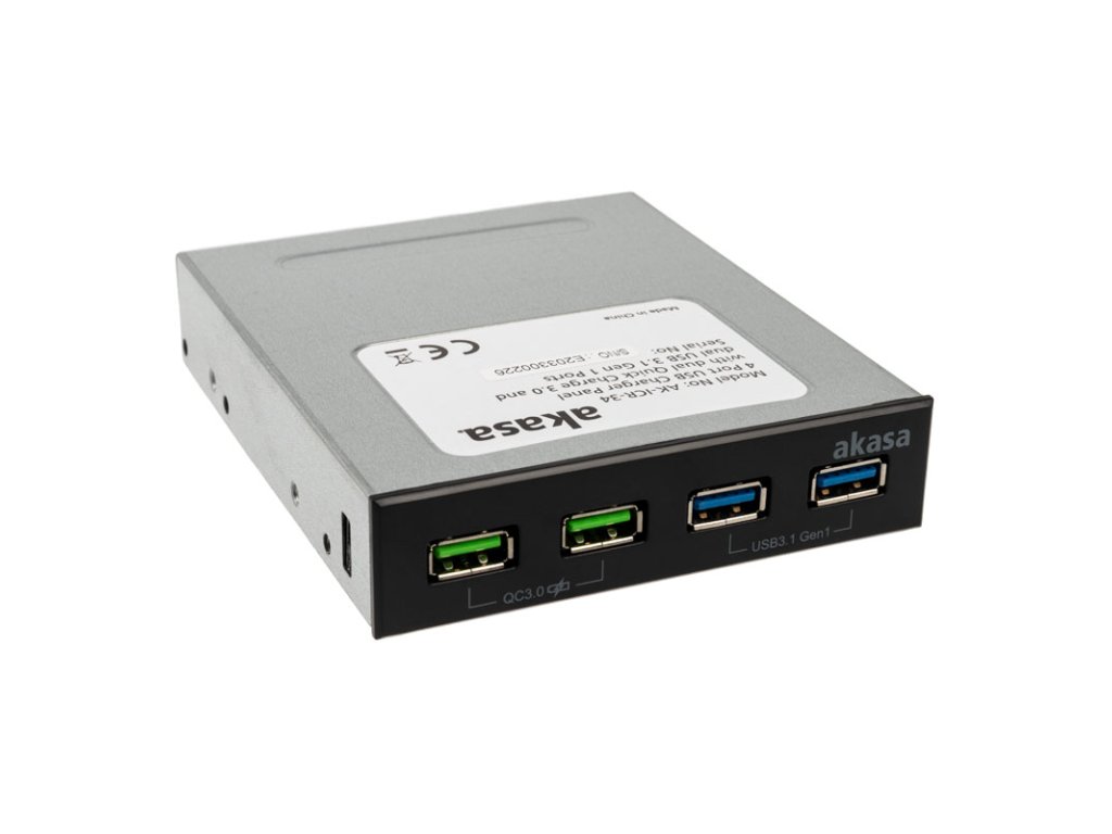StránkaPanel Akasa USB 3.1 Gen2 a rýchleho nabíjania je vybavený dvomaSloty USB 3.1 typu A a dva porty Quick Charge 3.0 a možno ho nainštalovať do externej 3,5-palcovej šachty v skrini. Výhodou je, že k pripojeniam sa dá dostať rýchlo a jednoducho bez toho, aby ste museli šmátrať v zadnej časti skrine.Dva porty, ktoré dokážu nabíjať zariadenia pripojené pomocou funkcie Quick Charge, poskytujú výkon až 18 W. Potreba energie je zabezpečená interným pripojením SATA z napájacej jednotky. Každý z portov USB na prednom paneli je pripojený k príslušným interným slotom na základnej doske pomocou kábla.
