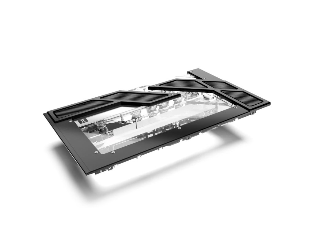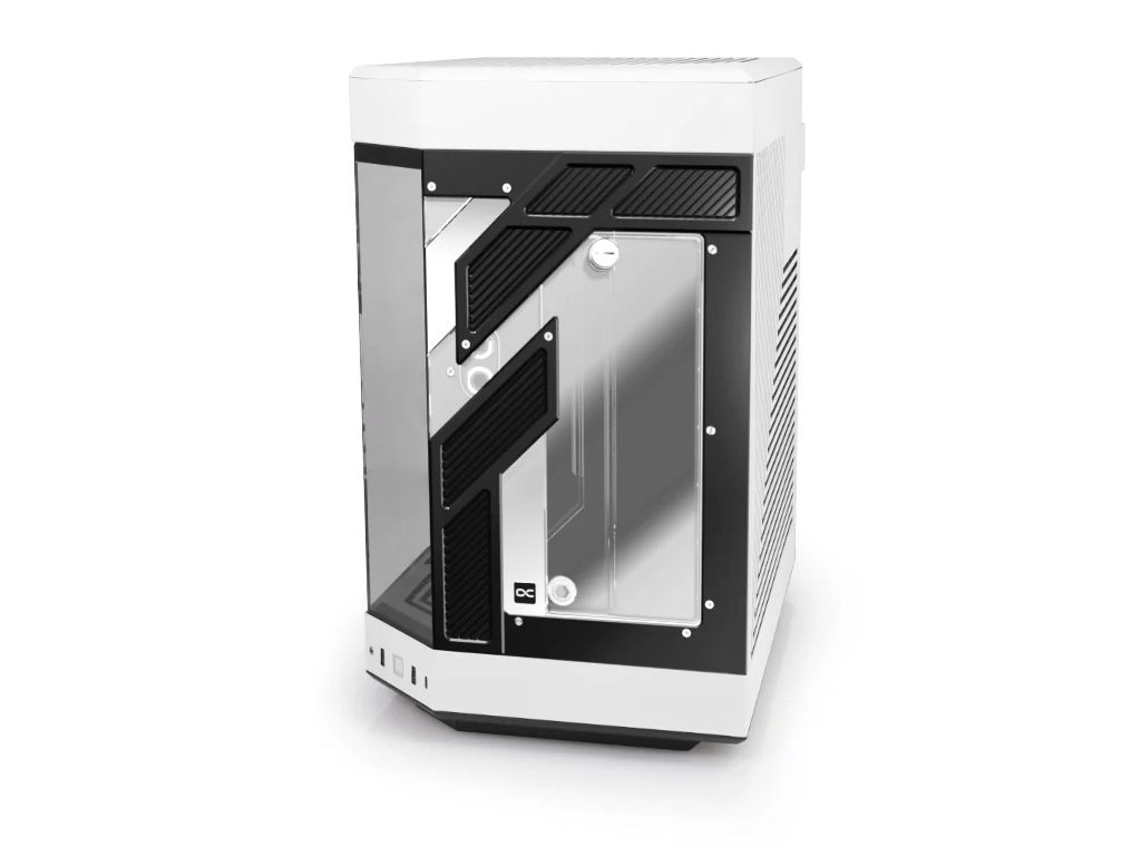 Alphacool Apex Distro-Plate sa ľahko inštaluje, pretože nahrádza už nainštalovaný predný sklenený panel modelu HYTE Y60. Môžete ho jednoducho vložiť na miesto skleneného panelu a bezpečne upevniť existujúcimi pôvodnými skrutkami. Po inštalácii stačí len pripojiť distro dosku k okruhu vodného chladenia