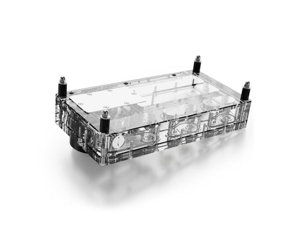 Vďaka celkovému počtu 8 závitov G1/4 palca môžete nádrž používaťdo okruhu vodného chladenia bez väčšej námahy. Ak chcete ušetriť miesto, môžete kombináciu zásobníka, rozdeľovača a čerpadla jednoducho namontovať na radiátor alebo použiť priložený zacvakávací mechanizmus. Pomocou mechanizmu je možné namontovať rozdeľovaciu dosku pomocou objímok na zadný panel vášho krytu a jednoducho ju zacvaknúť na miesto.