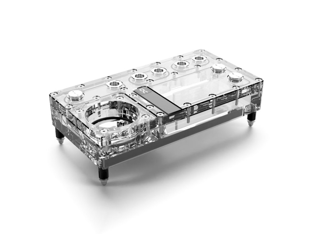 Vďaka celkovému počtu 8 závitov G1/4 palca môžete nádrž používaťdo okruhu vodného chladenia bez väčšej námahy. Ak chcete ušetriť miesto, môžete kombináciu zásobníka, rozdeľovača a čerpadla jednoducho namontovať na radiátor alebo použiť priložený zacvakávací mechanizmus. Pomocou mechanizmu je možné namontovať rozdeľovaciu dosku pomocou objímok na zadný panel vášho krytu a jednoducho ju zacvaknúť na miesto.