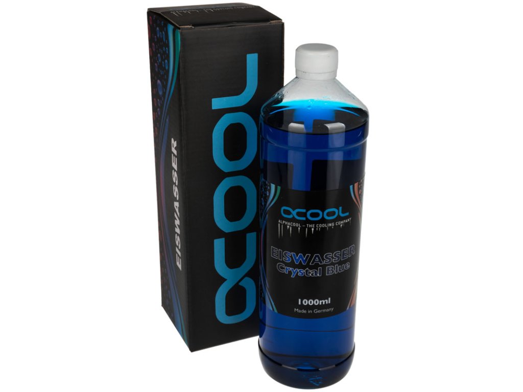 Chladiaca kvapalina pripravená na použitie z radu Eiswasser Crystal od spoločnosti Alphacool v modrej farbe. Fľaša obsahuje 1 000 mililitrov hotovej zmesi s vysokou materiálovou kompatibilitou a dlhotrvajúcou svietivosťou farieb.Prehľad vlastností ľadovej chladiacej kvapaliny Crystal Blue: