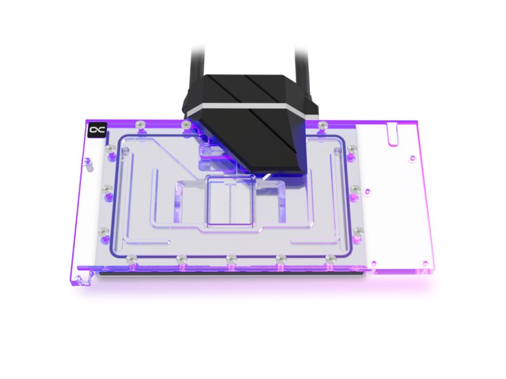 Celý krycí blok je vyrobený z poniklovanej medi a ponúka veľmi veľkú kontaktnú plochu na prednej aj zadnej strane GPU. Bolšpeciálne navrhnutá pre výkonnú RTX 4080 a kompletne ju pokrýva, prenajlepší možný odvod tepla aby sa zabezpečil dobrý výhľad na cirkulujúcu kvapalinu. Vonkajšia strana bloku je vyrobená z PMMA, a preto poskytuje dobrý výhľad na cirkulujúcu kvapalinu.