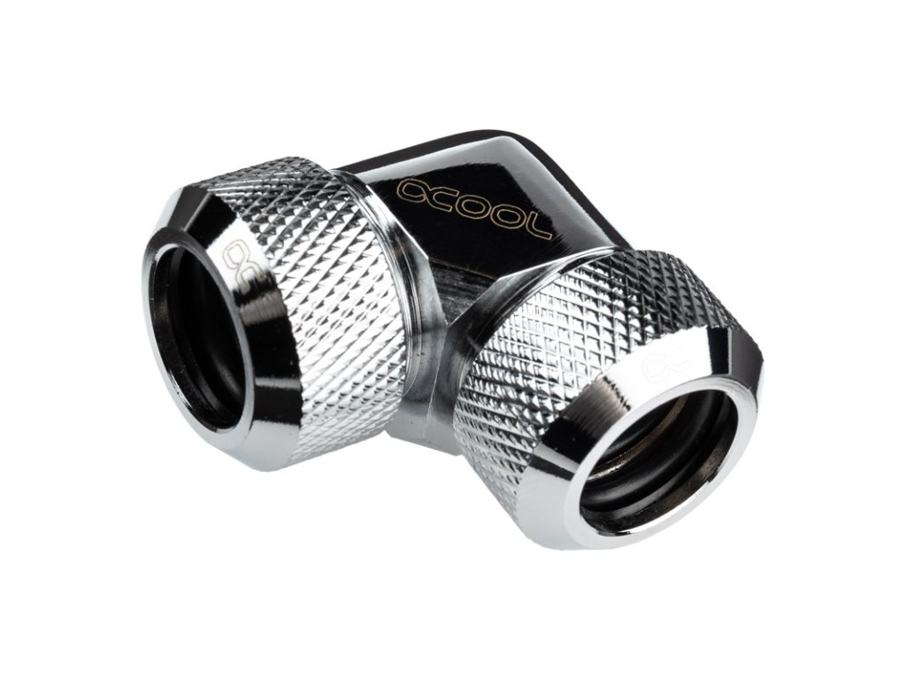 Alphacool Eiszapfen 13mm Hardtube skrutkovacia priechodka 90 stupňov L spojka akrylové mosadzné rúrky - chróm
