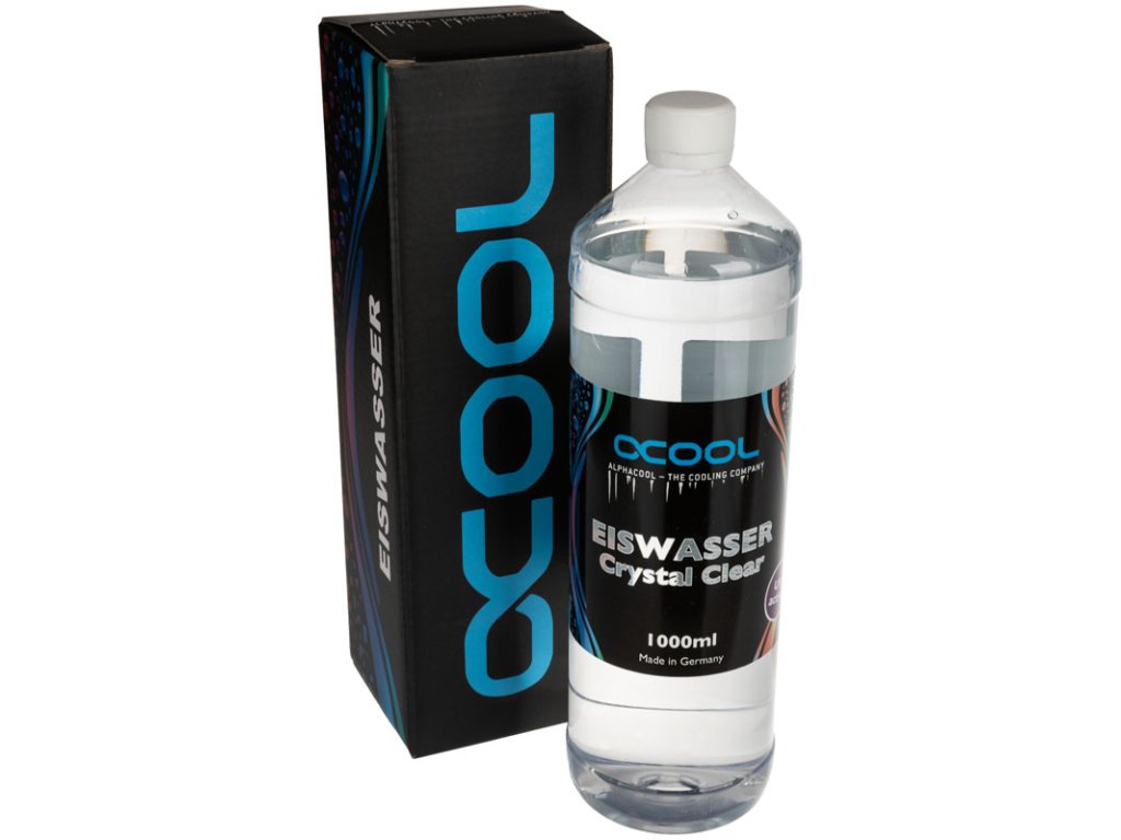 Priehľadná chladiaca kvapalina pripravená na použitie z radu Eiswasser Crystal od spoločnosti Alphacool s UV reaktivitou. Fľaša obsahuje 1 000 mililitrov hotovej zmesi s vysokou materiálovou kompatibilitou a trvanlivosťou.Prehľad vlastností chladiacej kvapaliny Crystal Clear s UV-aktívnym ľadom:
