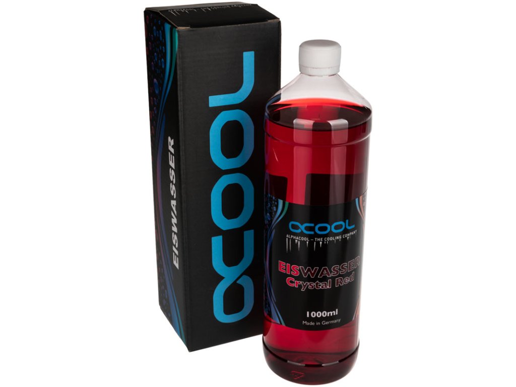 Chladiaca kvapalina pripravená na použitie z radu Eiswasser Crystal od spoločnosti Alphacool v červenej farbe. Fľaša obsahuje 1 000 mililitrov hotovej zmesi s vysokou materiálovou kompatibilitou a dlhotrvajúcou svietivosťou farieb.Prehľad vlastností ľadovej chladiacej kvapaliny Crystal Red: