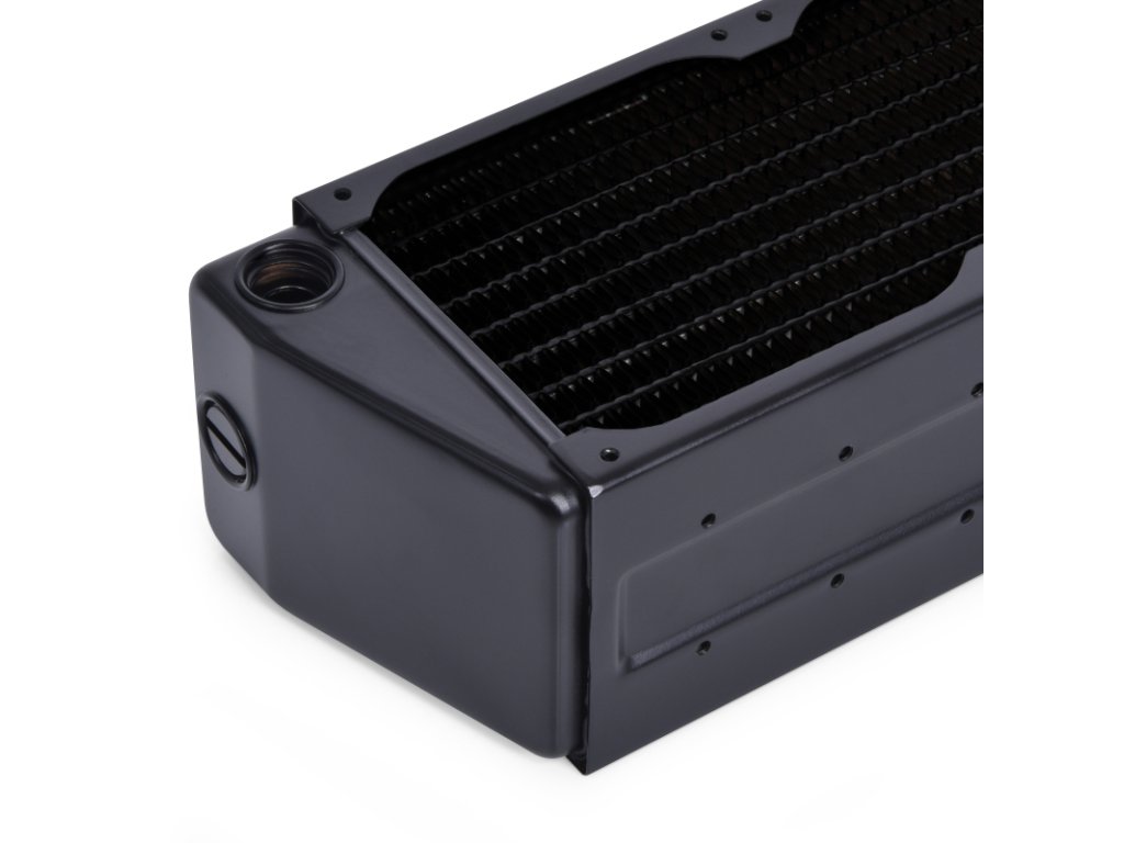 Jednoduchý dizajn radiátora umožňuje jeho vizuálnu integráciu do takmer každej stavby. Povrch je čierny a ponúka atraktívnu, matnú povrchovú úpravu.Pripojenie k systému vodného chladenia sa uskutočňuje prostredníctvom šiestich prípojok G1/4". To si však vyžaduje použitie rovnakých materiálov, aby sa zabránilo korózii.