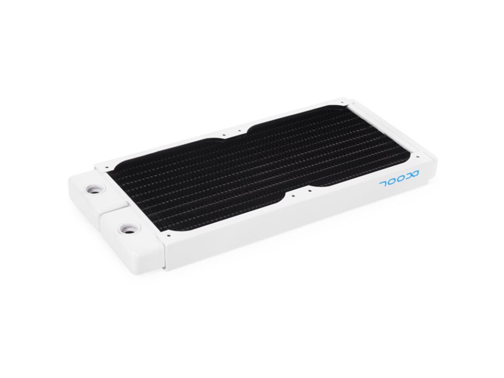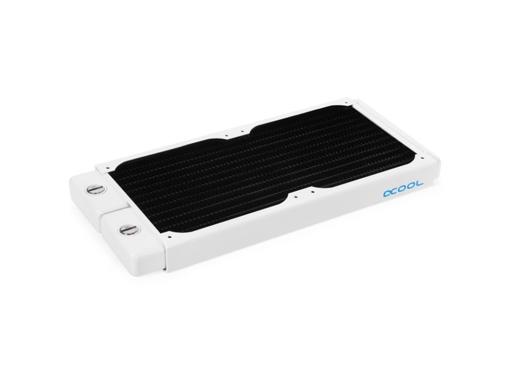 Celomedený radiátor zAlphacool pre dva 120 mm ventilátory v jednostrannej prevádzke alebo až štyri 120 mm ventilátory v konfigurácii push/pull. Na stránke NexXxoS ST30 Full Copper 240mm Dual-Chladič od spoločnosti Alphacool je vysoký len 30 milimetrov a je takmer celý vyrobený z medi. Všetky časti vedúce vodu sú preto mimoriadne tepelne vodivé. Radiátor je obklopený bielym oceľovým rámom, ktorý mu dodáva elegantný vzhľad.Veľmi dobré chladenie vďaka usporiadaniu medi a rebier