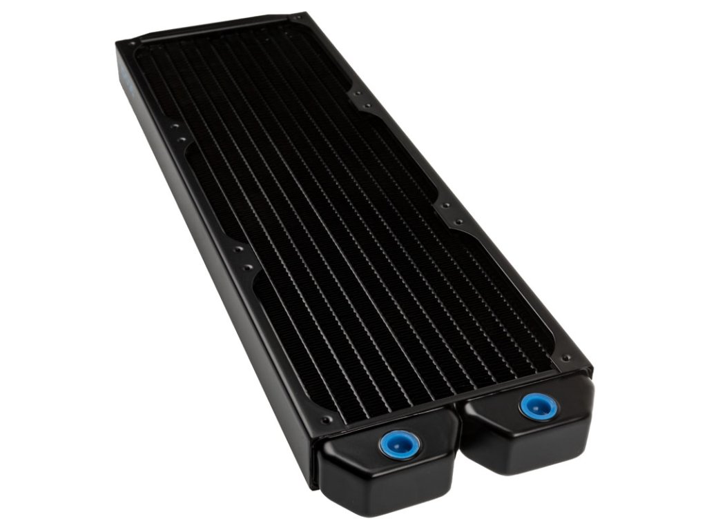 Celomedený radiátor zAlphacool pre tri 120 mm ventilátory v jednostrannej prevádzke alebo až šesť 120 mm ventilátorov v konfigurácii push/pull. Na stránke NexXxoS ST30 Full Copper 360mm Triple-Chladič od spoločnosti Alphacool má hrúbku len 30 milimetrov a pozostáva takmer výlučne z medi. Všetky časti vedúce vodu sú preto mimoriadne tepelne vodivé. Radiátor je obklopený čiernym oceľovým rámom, ktorý mu dodáva elegantný vzhľad.Trojitý 360 mm chladič NexXxoS ST30 Full Copper na prvý pohľad: