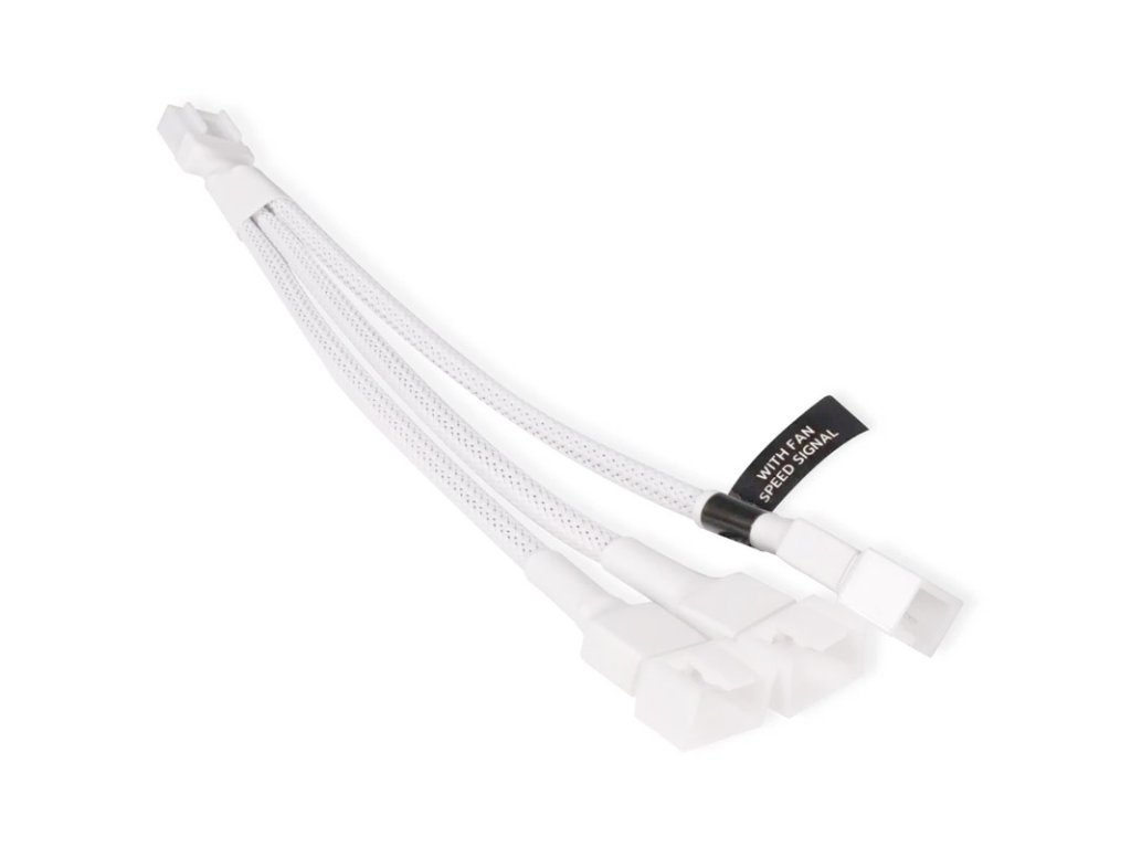 S týmto rozdeľovačom Y od spoločnosti Alphacool sa už nemusíte obávať, že nebudete mať dostatok slotov PWM pre svoje ventilátory. Rozdeľovač je pripojený k 4-pinovému PWM slotu na základnej doske a umožňuje vám,tri ventilátory s jedným slotom PWM na prevádzku. Kábel má biely plášť aDĺžka 15 cm.