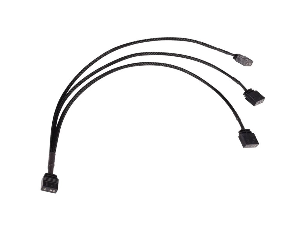 Tento rozdeľovací kábel je vysokokvalitný obalený 3-kolíkový kábel ARGB na 3x 3-kolíkový rozdeľovací kábel Y. Kábel je dlhý 30 cm a je kompatibilný so všetkými produktmi Alphacool ARGB, ako aj s väčšinou základných dosiek a ovládačov ARGB. Pomocou tohto rozdeľovača Y možno kombinovať niekoľko prvkov ARGB.Technické údaje: