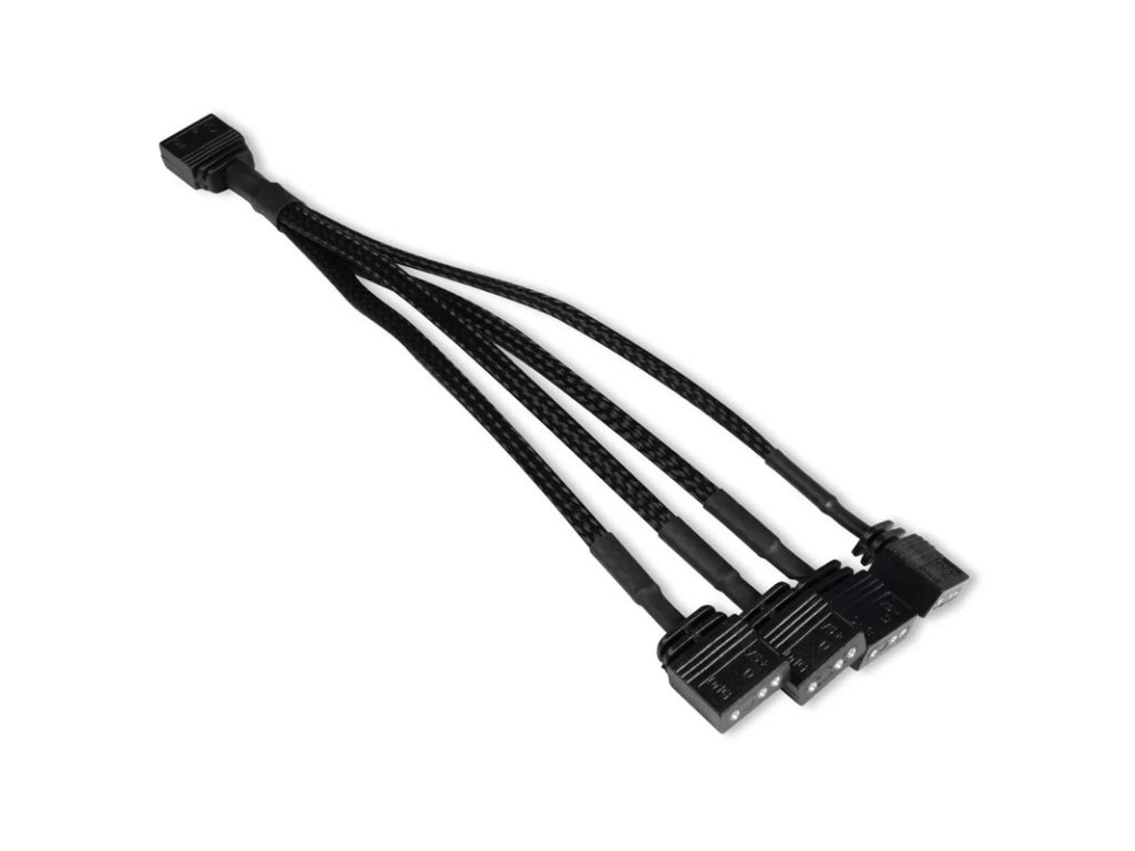 Tento rozdeľovací kábel je vysokokvalitný obalený 3-kolíkový kábel ARGB na 4x 3-kolíkový rozdeľovací kábel Y. Kábel je dlhý 15 cm a je kompatibilný so všetkými produktmi Alphacool ARGB, ako aj s väčšinou základných dosiek a ovládačov ARGB. Pomocou tohto rozdeľovača Y možno kombinovať niekoľko prvkov ARGB.Technické údaje: