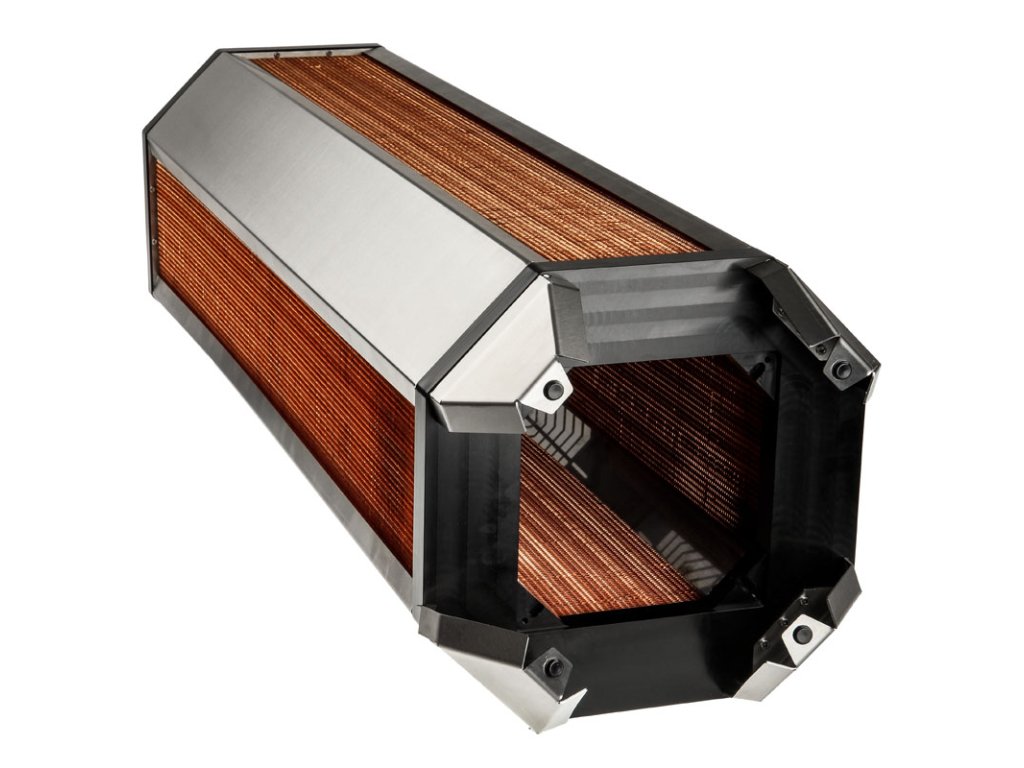 Airplex Gigant 3360 môže ponúknuť extrémne veľkú plochu plutiev. V neposlednom rade je to spôsobené tým, že vonkajší radiátor dosahuje impozantnú výšku 96 cm. Rebrá sú optimalizované pre nízky prietok vzduchu a poskytujú veľmi dobrý pasívny chladiaci výkon aj bez ventilátora. Paralelné medené potrubie tiež zabezpečuje nízky odpor prúdenia.