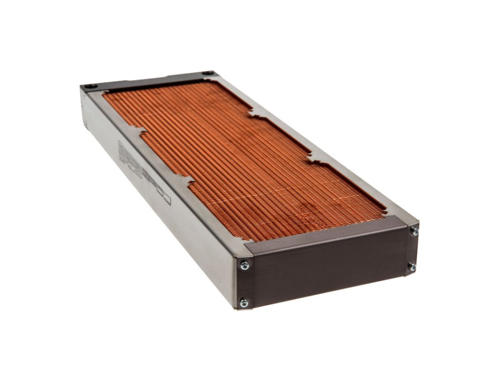 Nemecký špecialista na vodné chladenie aqua computer ponúka sériu chladičov "airplex radical", ktorá je primárne navrhnutá pre výkon a funkčnosť za primeranú cenu. Tu ponúkaná trojitá verzia pre tri 120 mm ventilátory na každej strane je vybavená medeným rebrovaním vo vnútri rámu z nehrdzavejúcej ocele a prechádzajú ňou dva rady medených potrubí. Airplex radical 2/360 je vysoký len 40 mm, a preto je kompatibilný s mnohými miestami inštalácie. Z krabice môže niesť tri 120 mm ventilátory na jednej strane; ak sa majú osadiť obe strany, je potrebné zakúpiť 12 voliteľných závitových vložiek (M3).Séria "airplex radical" je založená na skúsenostiach, ktoré spoločnosť aqua computer získala pri vývoji série "airplex modularity" (AMS), pričom modely "airplex radical" boli zredukované na základné prvky. Výsledkom je mimoriadne kvalitný chladič s neuveriteľným pomerom ceny a výkonu. Rovnako ako ich bratia z radu AMS, ani výmenníky tepla "airplex radical" nemajú spájkované spoje, a preto sú pri dodaní bez zvyškov cínu. Do kontaktu s chladiacou kvapalinou prichádza len delrín, nehrdzavejúca oceľ a meď - dokonca aj vo verziách s hliníkovými rebrami.