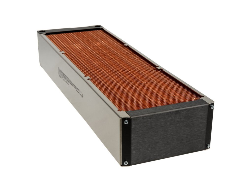 Nemecký špecialista na vodné chladenie aqua computer ponúka sériu chladičov "airplex radical", ktorá je primárne navrhnutá pre výkon a funkčnosť za primeranú cenu. Tu ponúkaná trojitá verzia pre tri 140 mm ventilátory na každej strane je vybavená medeným rebrovaním vo vnútri rámu z nehrdzavejúcej ocele a pre extrémny chladiaci výkon ňou prechádzajú štyri rady medených potrubí. Airplex radical 4/420 je dlhý 460 mm, široký 140 mm a vysoký 73 mm. Z výroby môže niesť tri 140 mm ventilátory na jednej strane; ak má byť osadený na oboch stranách, je potrebné zakúpiť 12 voliteľných závitových vložiek (M3).Séria "airplex radical" je založená na skúsenostiach, ktoré spoločnosť aqua computer získala pri vývoji série "airplex modularity" (AMS), pričom modely "airplex radical" boli zredukované na základné prvky. Výsledkom je mimoriadne kvalitný chladič s neuveriteľným pomerom ceny a výkonu. Rovnako ako ich bratia z radu AMS, ani výmenníky tepla "airplex radical" nemajú spájkované spoje, a preto sú pri dodaní bez zvyškov cínu. Do kontaktu s chladiacou kvapalinou prichádza len delrín, nehrdzavejúca oceľ a meď - dokonca aj vo verziách s hliníkovými rebrami.