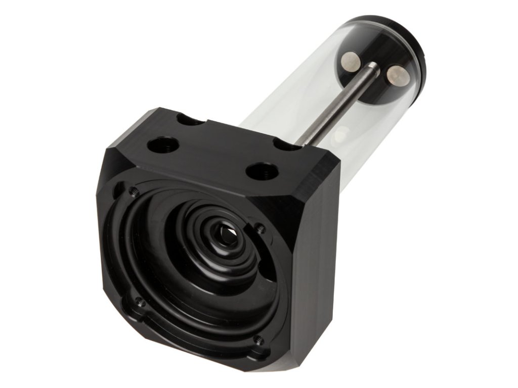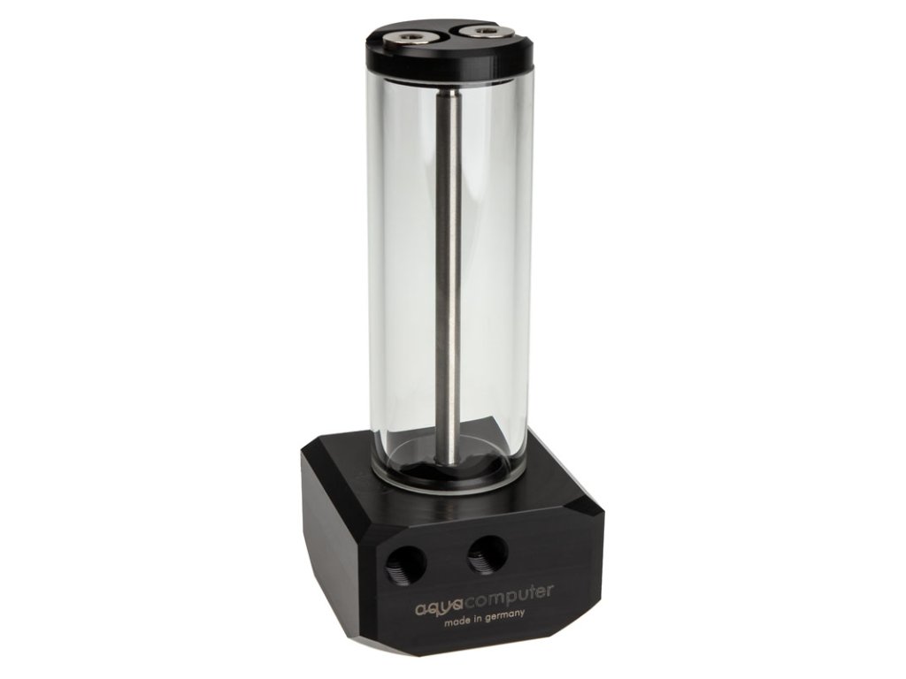 Expanzná nádoba aqualis D5 150 ml od spoločnosti aqua computer je určená na priamu montáž na čerpadlo Laing D5, ktoré nie je súčasťou dodávky. Čerpadlo sa jednoducho pripevní k základni nádržky pomocou upevňovacieho krúžku a štyroch skrutiek. Do základne AGB je možné priskrutkovať aj samostatne dostupné montážne gumy, ktoré umožňujú montáž na skrinku počítača.Samotná nádoba je vyrobená z vysokokvalitného borosilikátového skla, ktoré má na rozdiel od akrylátového skla, ktoré sa často používa na vyrovnávacie nádoby, veľmi vysokú tvrdosť a odolnosť proti poškriabaniu, veľmi nízku tepelnú rozťažnosť a vynikajúcu chemickú a tepelnú odolnosť. Sklenená trubica tejto 150 ml verzie má vonkajší priemer 50 milimetrov a hrúbku steny 5 milimetrov. Základňa a veko sú na druhej strane vyrobené z Delrinu, každé má dva otvory G1/4 palca a sú spojené vnútri trubice tyčinkou z nehrdzavejúcej ocele.
