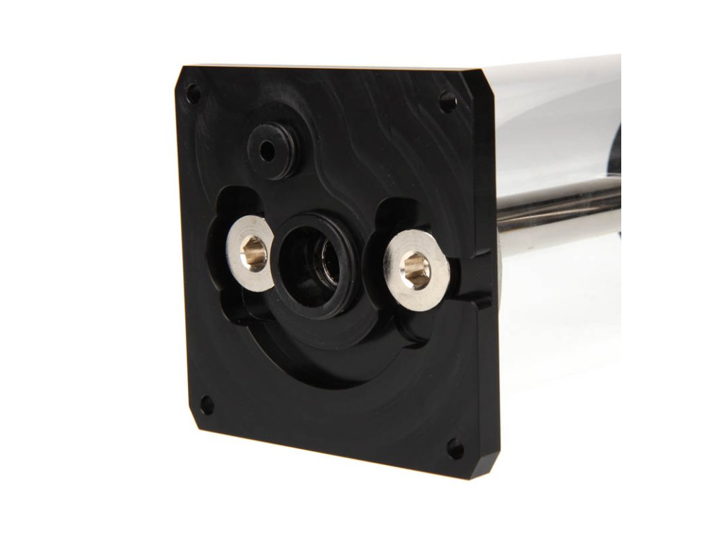 Expanzné nádrže radu aqualis sú vybavené rúrkou z borosilikátového skla, ktoré má na rozdiel od akrylového skla často používaného na rúrkové expanzné nádrže veľmi vysokú tvrdosť a odolnosť proti poškriabaniu, veľmi nízku tepelnú rozťažnosť a vynikajúcu chemickú a tepelnú odolnosť. Sklenená rúrka má vonkajší priemer 75 mm a hrúbku steny 5 mm. Základňa a veko série aqualis sú vyrobené z delrínu, veko a základňa sú spojené poniklovanou mosadznou rúrkou.Poznámka:Podstavce aqualis pre adaptéry čerpadiel sú na spodnej strane vybavené pripojovacími prírubami a môžu sa používať len s vhodným adaptérom čerpadla Aqua Computer! Voliteľne je možné namontovať až dva osvetľovacie moduly do dvoch závitov G1/4.