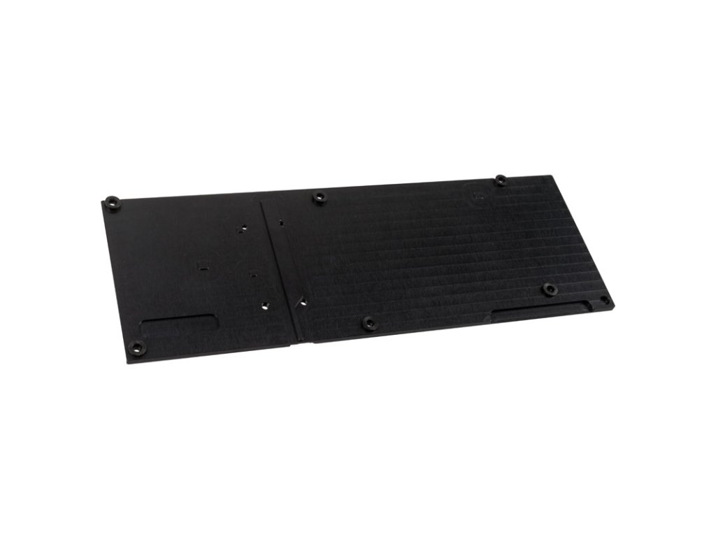 Táto zadná doska vyfrézovaná z pevného hliníka sa môže používať ako doplnok kkryografie NEXT 2080 a tým výrazne zlepšiť rozloženie síl najmä v oblasti regulátorov napätia. Zadná doska je čierno eloxovaná a má vyfrézované kontaktné plochy pre zadné moduly RAM grafickej karty.Okrem vizuálneho vylepšenia poskytuje backplate väčšiu stabilitu grafickej karty s vodným chladičom. Účinne tak zabraňuje tomu, aby sa doska plošných spojov ohýbala v dôsledku jednostranného uťahovania skrutiek pri pripájaní hlavného chladiča a bola tak trvalo vystavená namáhaniu.