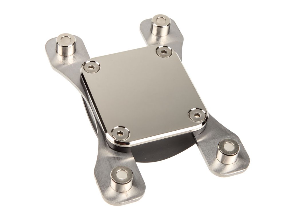 Montážny systém cuplex kryos NEXT má veľmi kvalitnú povrchovú úpravu a umožňuje jednoduchú inštaláciu na rôzne pätice AMD radu AM4/AM5. Dve pevné dosky z nehrdzavejúcej ocele s hrúbkou materiálu 2,5 milimetra a celkovo štyri zalisované poniklované pružinové košíčky vytvárajú pri inštalácii úhľadný a elegantný vzhľad. Ten je dosiahnutý predovšetkým nízkou celkovou výškou a v pružinových košíčkoch ukrytými vrtuľkami a pružinami, ktoré sú určené na samotné pripevnenie chladiča k základnej doske. Hrotové skrutky sa dajú pohodlne nainštalovať buď ručne, alebo pomocou imbusového kľúča. Keďže pätica procesora na základnej doske už má backplate, táto verzia vodného chladiča CPU cuplex kryos NEXT neobsahuje dodatočný backplate.Dokonalá kombinácia s termálnou pastou Thermal Grizzly Kryonaut