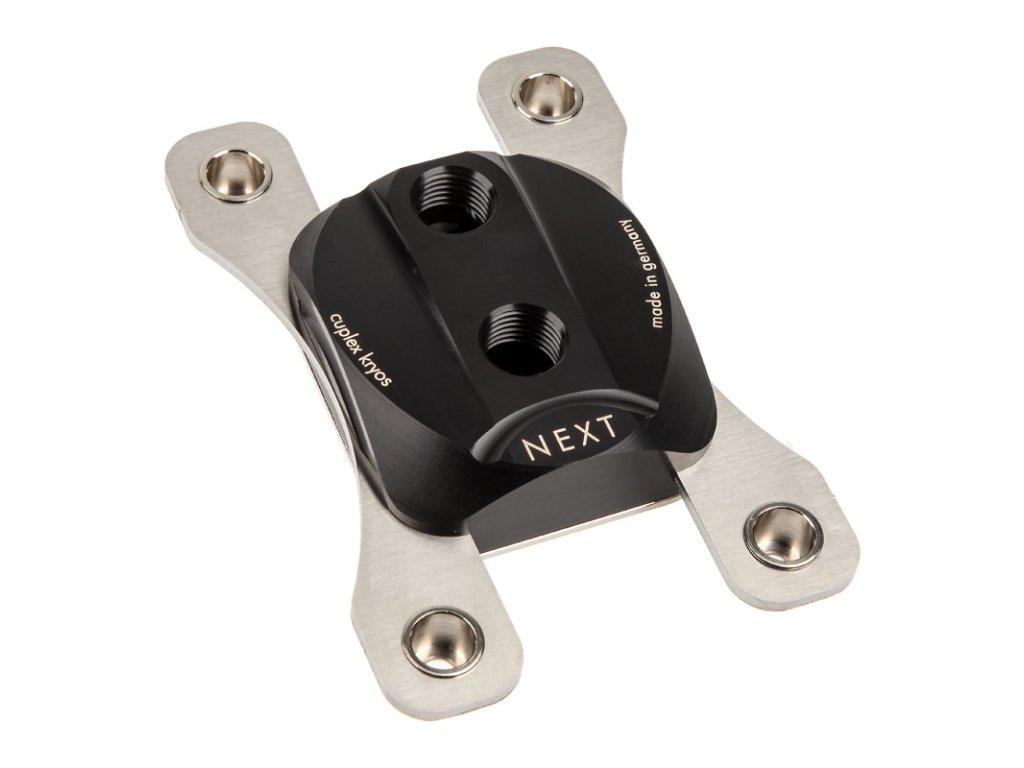 Aqua computer cuplex kryos NEXT prekonáva doteraz bezkonkurenčný chladiaci výkon svojho úspešného predchodcu a predstavuje tak nový míľnik vo vývoji vodných chladičov CPU. Základňa chladiča je vybavená mimoriadne jemnou mikroštruktúrou so šírkou štruktúry menšou ako 200 µm. Na optimálnu distribúciu chladiacej kvapaliny sa používa plochá dýza integrovaná do puzdra, pričom chladiaca kvapalina prúdi v strede mikroštruktúry a odtiaľ je odvádzaná v dvoch smeroch.Cuplex kryos NEXT je k dispozícii v rôznych verziách. Ide o verziu acetal/nikel, ktorá má lesklé čierne acetalové puzdro z vysokoúčinného plastu a poniklovanú medenú základňu a ktorej výnimočný vzhľad prerušujú len plechy z nehrdzavejúcej ocele montážneho systému.