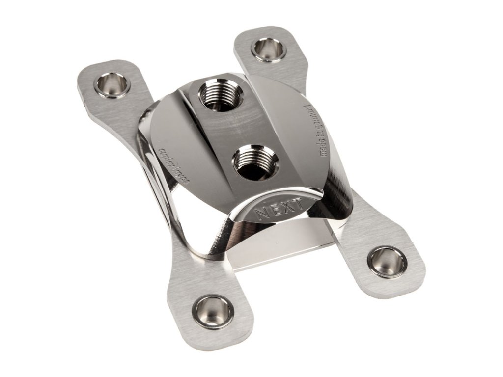 Aqua computer cuplex kryos NEXT prekonáva doteraz bezkonkurenčný chladiaci výkon svojho úspešného predchodcu a predstavuje tak nový míľnik vo vývoji vodných chladičov CPU. Základňa chladiča je vybavená mimoriadne jemnou mikroštruktúrou so šírkou štruktúry menšou ako 200 µm. Na optimálnu distribúciu chladiacej kvapaliny sa používa plochá dýza integrovaná do puzdra, pričom chladiaca kvapalina prúdi v strede mikroštruktúry a odtiaľ je odvádzaná v dvoch smeroch.Cuplex kryos NEXT je k dispozícii v rôznych verziách, pričom toto je kompletne poniklovaná verzia, ktorá má poniklovaný mosadzný kryt a poniklovanú medenú základňu a ktorej výnimočný vzhľad prerušujú len plechy z nehrdzavejúcej ocele montážneho systému.
