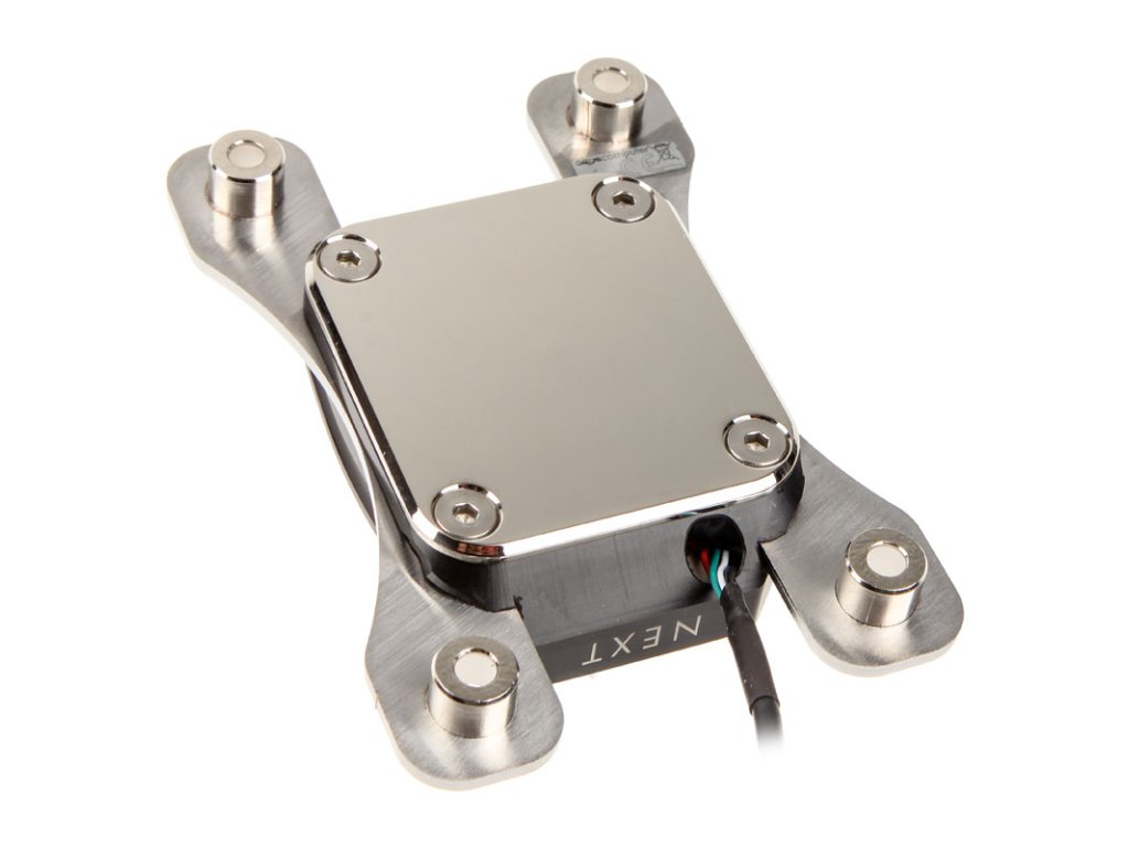 Aqua computer cuplex kryos NEXT prekonáva doteraz bezkonkurenčný chladiaci výkon svojho úspešného predchodcu a predstavuje tak nový míľnik vo vývoji vodných chladičov CPU. Základňa chladiča je vybavená mimoriadne jemnou mikroštruktúrou so šírkou štruktúry menšou ako 200 µm. Na optimálnu distribúciu chladiacej kvapaliny sa používa plochá dýza integrovaná do puzdra, pričom chladiaca kvapalina prúdi v strede mikroštruktúry a odtiaľ je odvádzaná v dvoch smeroch.Cuplex kryos NEXT je k dispozícii v rôznych verziách. Ide o verziu acetal/nikel, ktorá má lesklé čierne acetalové puzdro z vysokoúčinného plastu a poniklovanú medenú základňu a ktorej výnimočný vzhľad prerušujú len plechy z nehrdzavejúcej ocele montážneho systému.