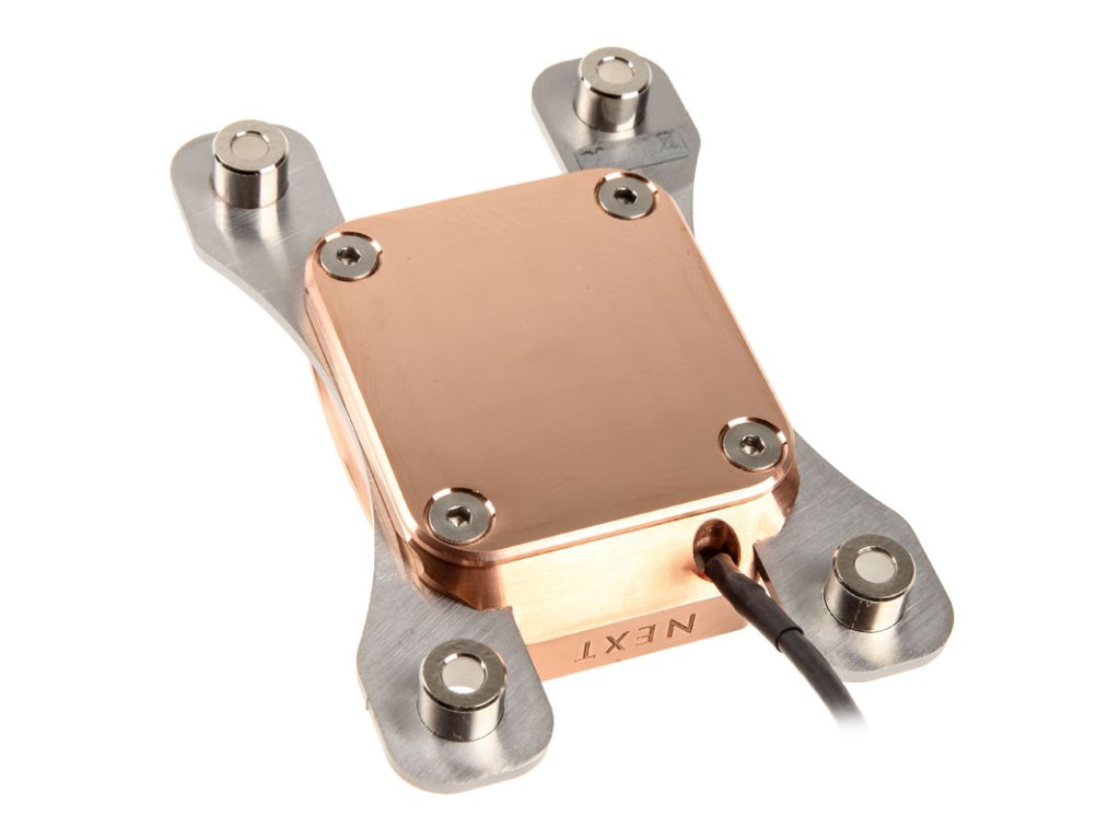 Aqua computer cuplex kryos NEXT prekonáva doteraz bezkonkurenčný chladiaci výkon svojho úspešného predchodcu a predstavuje tak nový míľnik vo vývoji vodných chladičov CPU. Základňa chladiča je vybavená mimoriadne jemnou mikroštruktúrou so šírkou štruktúry menšou ako 200 µm. Na optimálnu distribúciu chladiacej kvapaliny sa používa plochá dýza integrovaná do puzdra, pričom chladiaca kvapalina prúdi v strede mikroštruktúry a odtiaľ je odvádzaná v dvoch smeroch.Systém cuplex kryos NEXT je k dispozícii v rôznych verziách, pričom táto verzia je medená, má medené puzdro a medenú základňu a jej výnimočný vzhľad narúšajú len plechy z nehrdzavejúcej ocele montážneho systému.