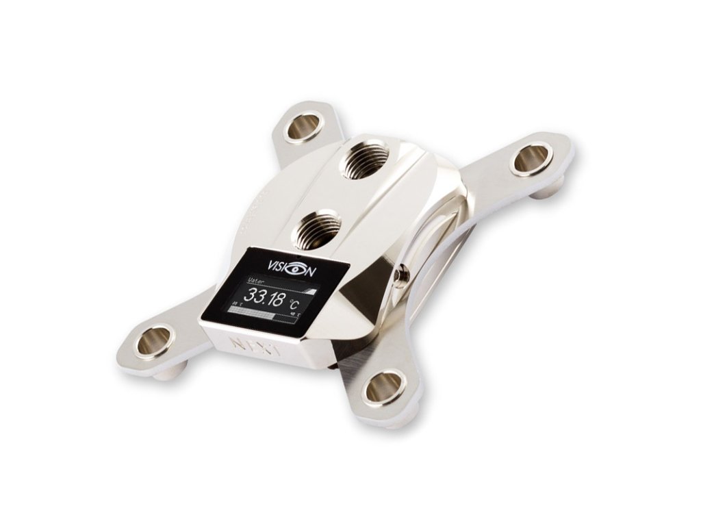 Verzie VARIO cuplex kryos NEXT umožňujú zmenu geometrie základne chladiča pomocou štyroch bočných nastavovacích skrutiek. Chladič sa ujíma boja proti tepelnému preťaženiu vášho procesora. Monitoruje teplotu všetkých jadier, zatiaľ čo základňa chladiča je optimálne nastavená pomocou štyroch nastavovacích skrutiek. Kov sa pri zahriatí rozpína. VARIO na to reaguje a prispôsobí sa tak, aby bol váš procesor chladený bez kompromisov.So systémom VISION máte vždy všetko na očiach