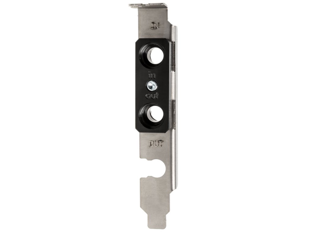 To umožňuje, aby sa prietok aj spiatočka vodného chladiaceho okruhu viedli von a späť do krytu. Držiak štrbiny je vyrobený z vysokokvalitnej nehrdzavejúcej ocele, dve spojovacie časti so závitom G1/4 palca sú vyrobené z robustného a odolného delrínu, ktoré sú navzájom utesnené O-krúžkami. Kábel s priemerom 6,5 mm prechádza cez káblové vedenie a je chránený pred poškodením gumovým krúžkom.