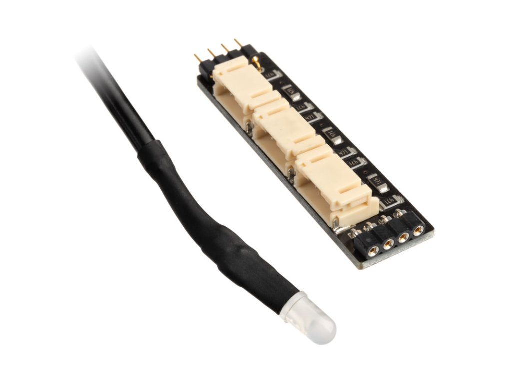 Stránkaaqua počítač RGB SPLITTY3 je rozdeľovač RGB, ktorý môže napájať až tri jednotlivé LED diódy. LED diódy možno namontovať na určitých miestach napríklad na systéme vodného chladenia, aby ho zvýraznili. Samotná doska sa pripája vertikálne k 4-pinovému konektoru na základnej doske alebo k farbwerk kontroléru od aqua computer. Na druhý koniec možno potom pripojiť buď ďalší Splitty3, alebo pásik RGB LED. RGB LED dióda s priemerom 5 mm a káblom dlhým 30 cm je už súčasťou Splitty3. Ďalšie LED diódy je potrebné zakúpiť samostatne.Technické údaje:
