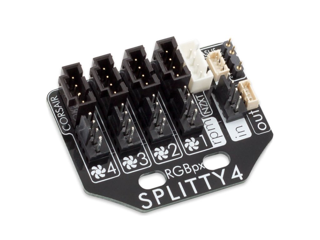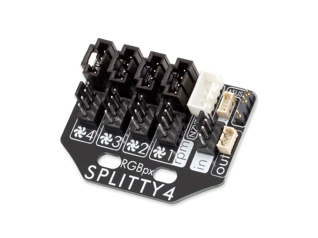Stránkaaqua počítač RGBpx Splitty4 je univerzálny rozdeľovač, ktorý môže napájať až štyri ventilátory Corsair alebo osem ventilátorov NZXT s PWM spoločným signálom PWM. Možno ho použiť aj so štyrmi RGB LED pásikmi so 4-pinovým pripojením. Oba typy pripojenia možno používať aj nezávisle od seba, napríklad ako čistý RGB LED rozbočovač.Najdôležitejšie vlastnosti rozdeľovača Aqua Computer Splitty4: