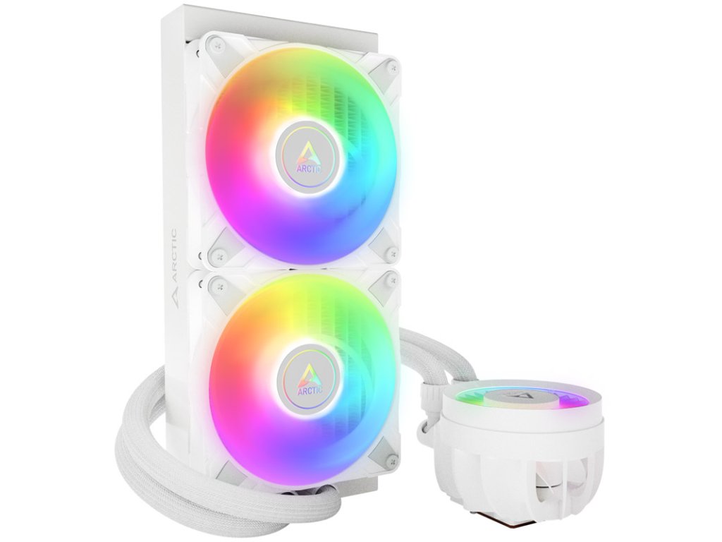 Použité ventilátory sú dva 120 mm modely Arctic P12 A-RGB, ktoré boli špeciálne vyvinuté na použitie na chladičoch. Ventilátory s priemerom 120 milimetrov poskytujú výkonný prietok vzduchu pri maximálnych 2 000 otáčkach za minútu. Prispôsobiteľné osvetlenie RGB premení váš herný počítač na skutočnú pastvu pre oči.