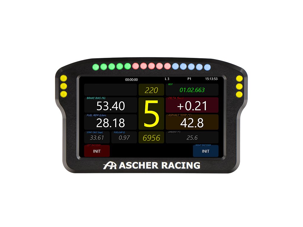 SAscher Racing Prístrojová doska Displej posunie vaše pretekárske nastavenie na vyššiu úroveň. Je určený pre rôzne základne volantov a motory, a preto ho možnomožno ľahko integrovať.