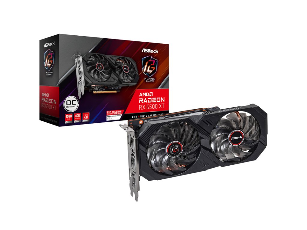 StránkaASRock Radeon RX 6500 XT Phantom Gaming D OC je výkonná herná grafická karta strednej triedy zo série Radeon 6000. ASRock Radeon RX 6500 XT Phantom Gaming D OC je založený na grafickom čipe Navi-24, ktorý je založený na architektúre GPU RDNA-2. PodporujeSledovanie lúčov pre realisticky vyzerajúce rozloženie svetla v hrách. Podporuje tiežDirectX 12 Ultimate a sAMD FidelityFX rôzne možnosti vylepšenia obrazu. To umožňujeASRock Radeon RX 6500 XT Phantom Gaming D OC dokáže zobrazovať počítačové hry v rozlíšení Full HD pri 60 Hz.Grafický čip Navi-24 grafickej karty Radeon RX 6500 XT sa taktuje vo vlastnom dizajne sHerný takt 2 650 MHzzatiaľ čo maximálnaTaktovače Boost 2 820 MHz je. Herné hodiny udávajú nominálnu priemernú taktovú frekvenciu pri záťaži počas hrania hier. Pamäťové moduly pripojené cez 64-bitové pamäťové rozhranie4 GB video pamäte GDDR6 s frekvenciou 9 000 MHz (efektívne 18 000 MHz).